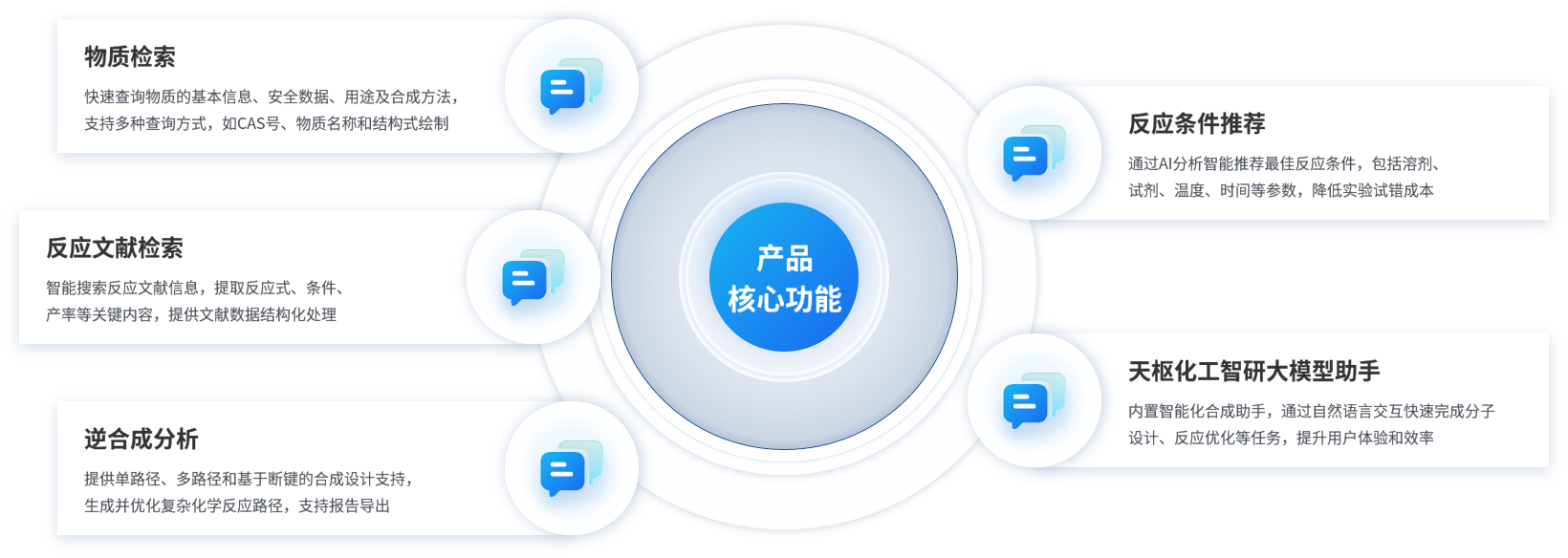 天枢智能合成平台是中化数智自主研发的智能化化学合成辅助工具,依托人工智能和大模型技术,专注于化学研发中的分子设计、逆合成分析和反应条件优化等核心环节。通过平台,研发人员能够高效获取所需数据,优化合成设计,提高研发效率并降低试错成本,助力化工行业实现智能化、数字化转型。