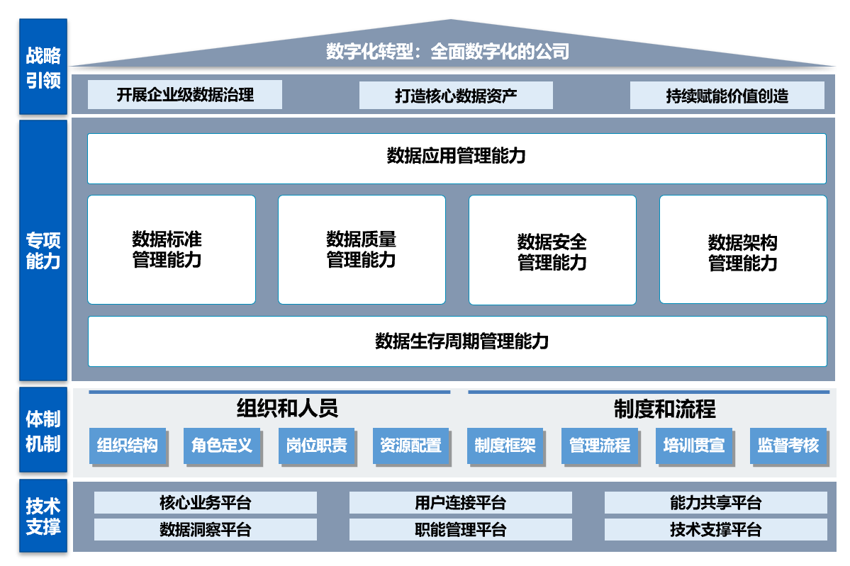 提供完整的数据资产管理平台解决方案,建立流程支撑、数据贯标、质量核查、模型管理、安全管控、存储周期控制的一体化数据工具体系,强化数据管控技术手段,全面提升数据质量。