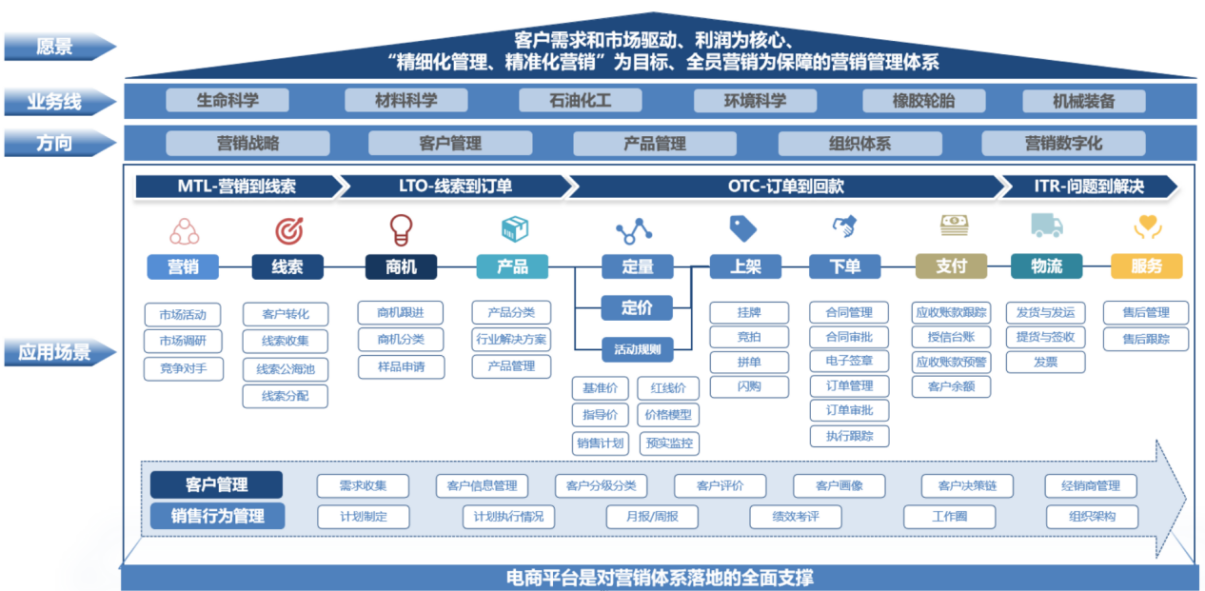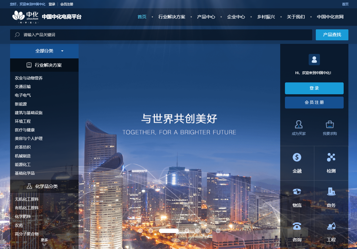 平台目前涵盖中国中化旗下90余家重点生产企业的8000多个产品及60000多个牌号,建立了以行业应用解决方案为导向的营销服务体系,年度销售金额超过1500亿。不仅为客户提供商品服务,还提供社区交流、趋势信息和行业资讯等服务,致力于成为企业数字化营销转型的首选伙伴。