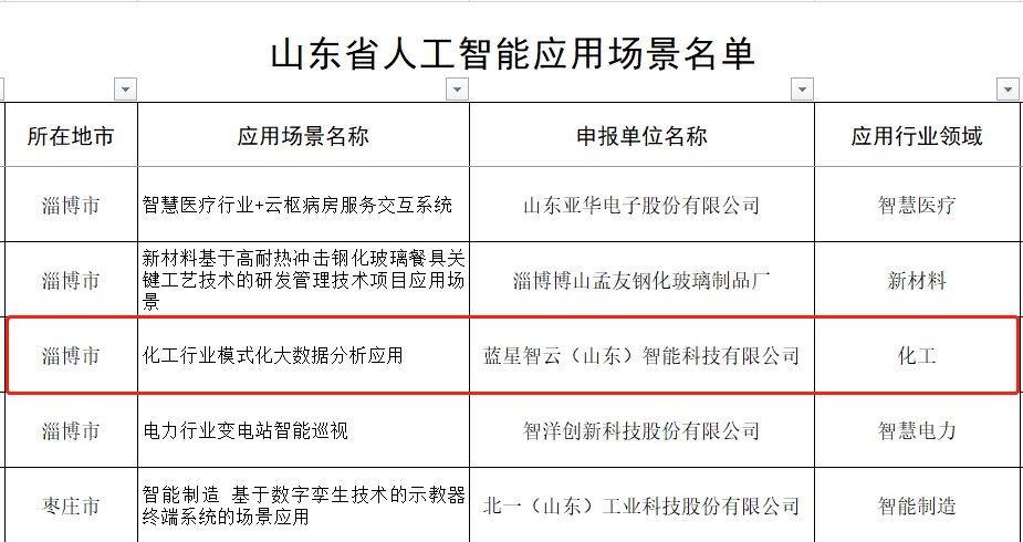 蓝星智云“化工行业模式化大数据分析应用”入选“山东省人工智能应用场景名单”