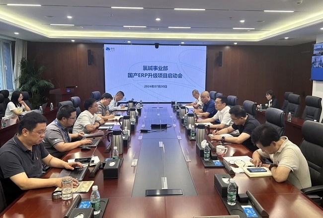 近日,中化信息承担建设的氯碱事业部国产ERP升级项目召开启动会。氯碱事业部总裁姚庆伦、副总裁税敏、财务总监焦崇高、各职能部室相关领导及下属企业关键用户团队,中化信息执行董事、党委书记、总经理赵洋及项目团队相关人员出席会议。