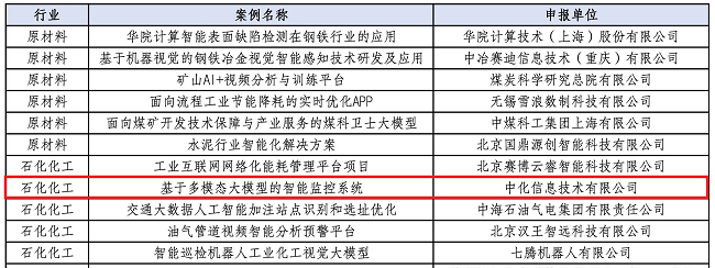 中化信息申报的“基于多模态大模型的智能监控系统”作为新型工业化优秀案例入选案例集。本项目采用前沿的多模态大模型技术,构建创新的开发范式,实现对非常规作业的零样本场景识别,有效解决工业生产中的监控难题。目前,该系统已应用于中国中化化工安全生产业务场景中,可有效识别人员违章行为,预计提升监控效率10%,减少夜间工作量50%
