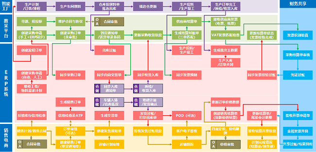 平台覆盖财务会计、管理会计、采购与物资管理、销售管理、生产管理等5大领域,同步实施ERP、财务共享、司库、数字化采购、销售电商等10套数字化系统,构建起“五横十纵”的数字化架构,实现了业务流程标准化、关键数据共享化、系统集成有机化、业务凭证自动化、资金收付集中化、生产计划线上化、产供销平衡化,成功构筑了黎明院一体化经营管理平台,为企业高效运营奠定了坚实基础。
